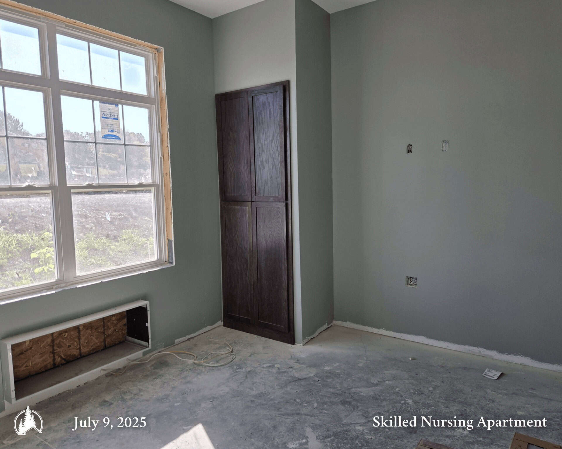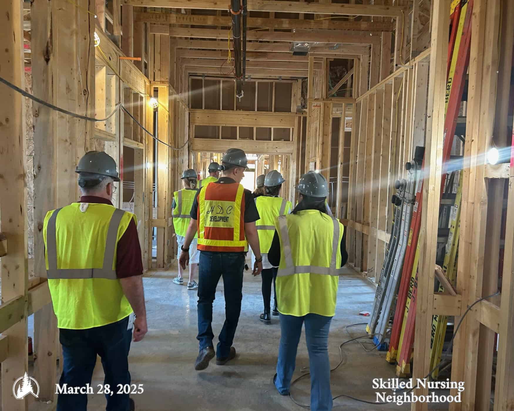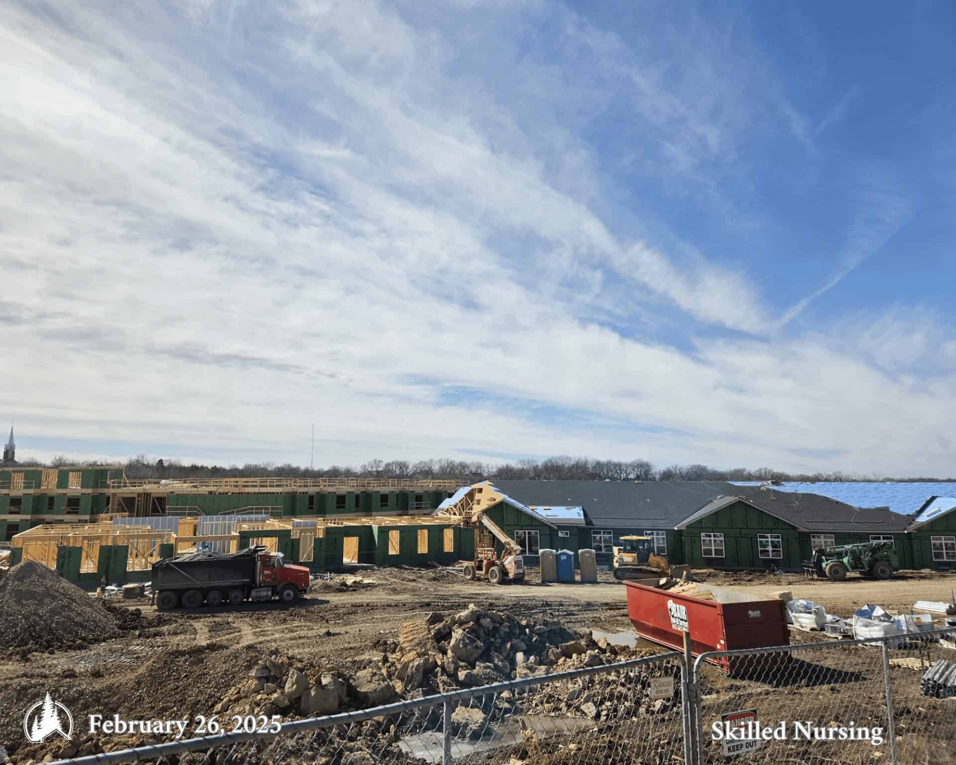 The projected move-in date for the new campus is anticipated to begin in spring 2026, coinciding with the completion of construction. We’re excited to welcome residents to our new campus and provide an enhanced environment for their care and comfort.